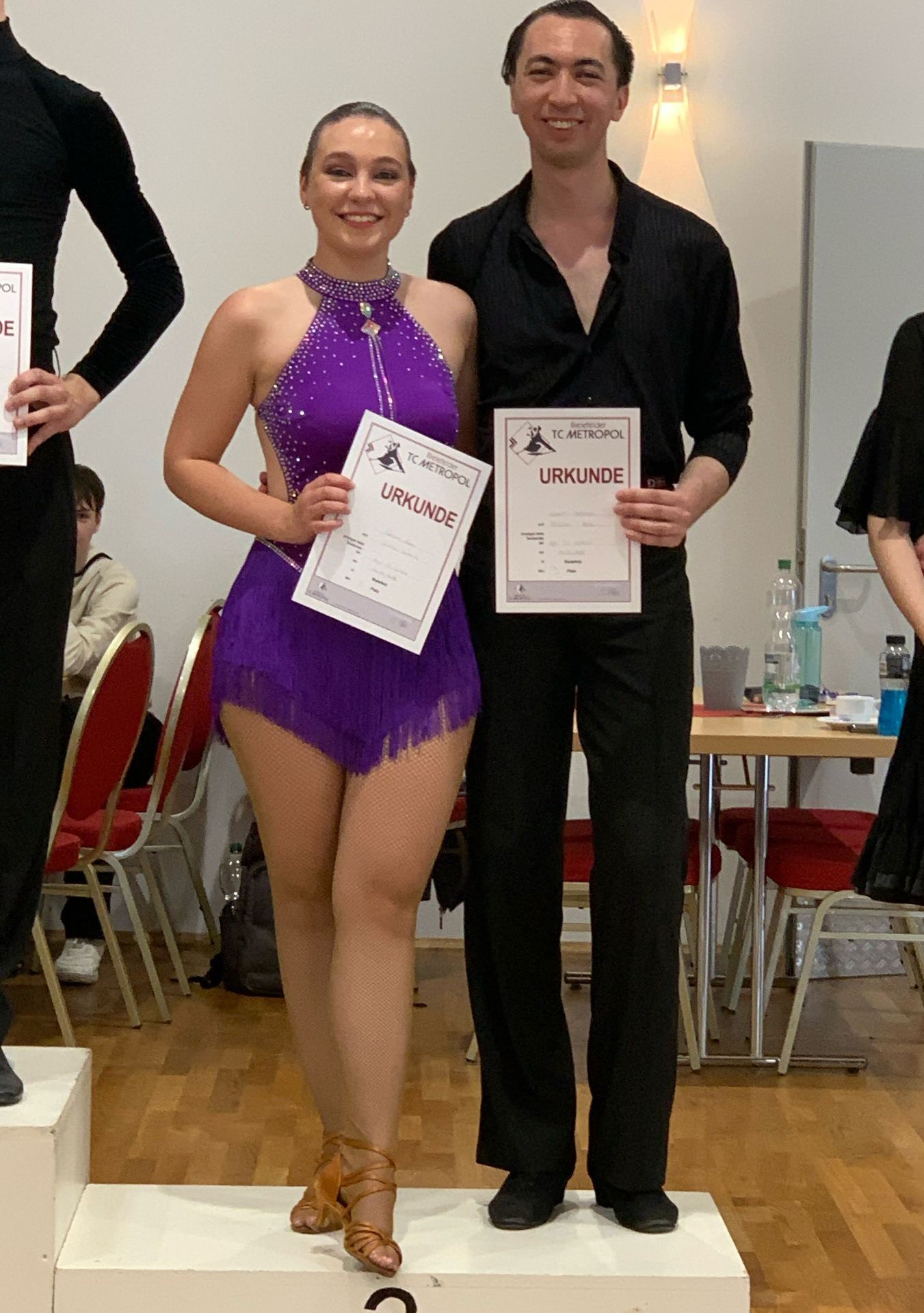 Damit sind Franka und Jean-Philipp in Standard und Latein mit nur Abstand eines Monats in die höhere Leistungsklasse aufgestiegen. Wir gratulieren unserem Paar ganz herzlich für diese Leistung in beiden Disziplinen.
